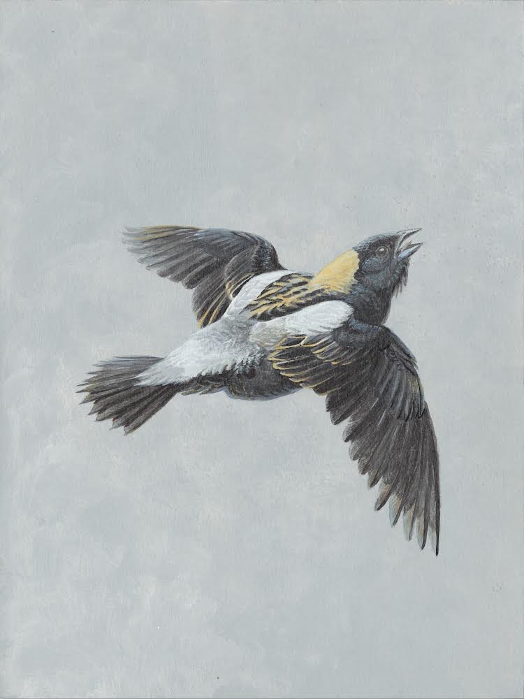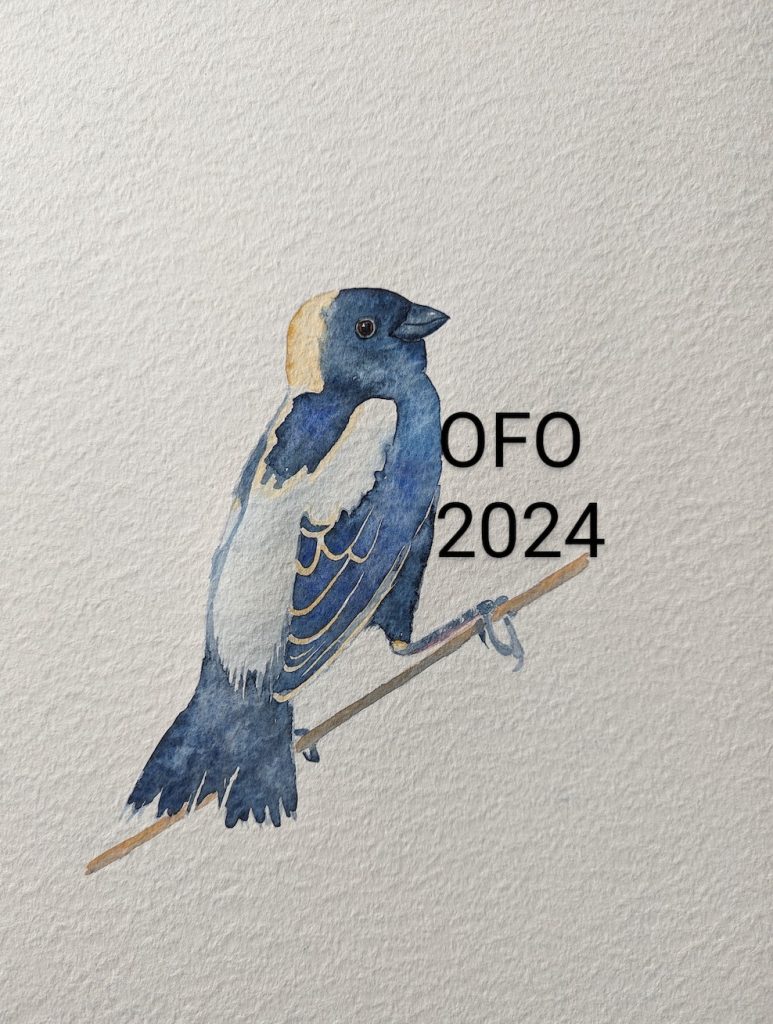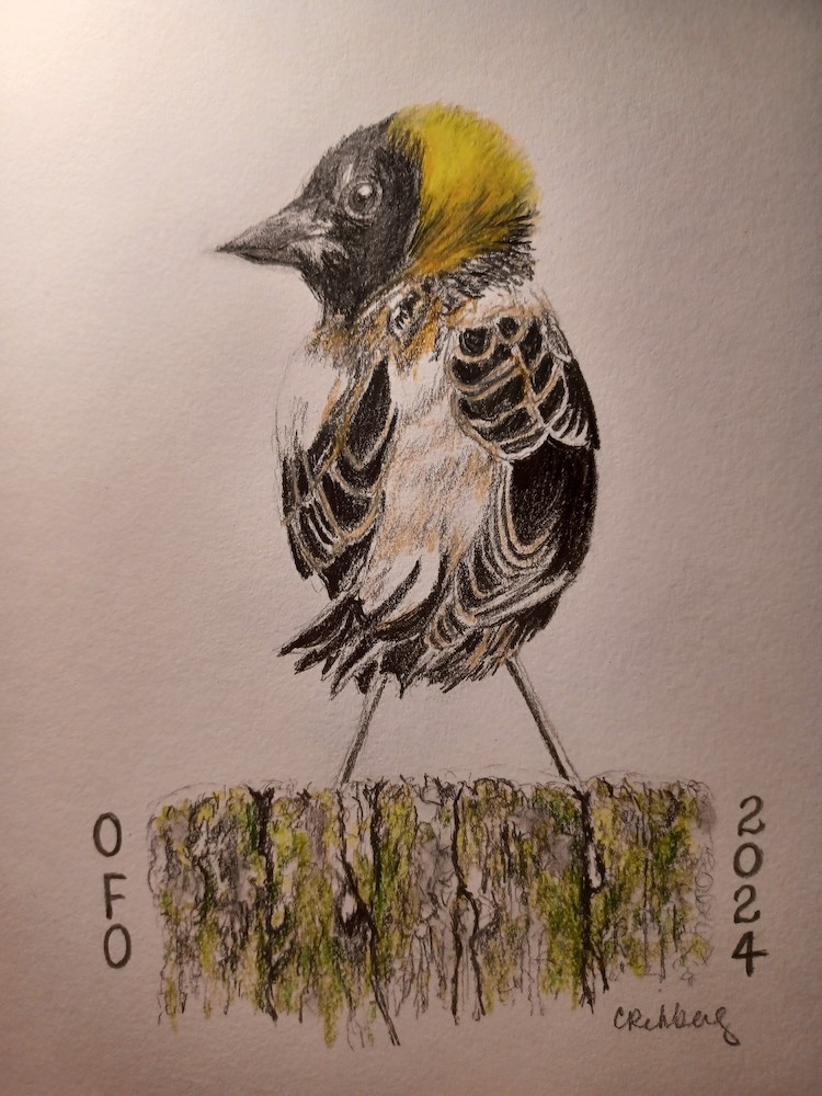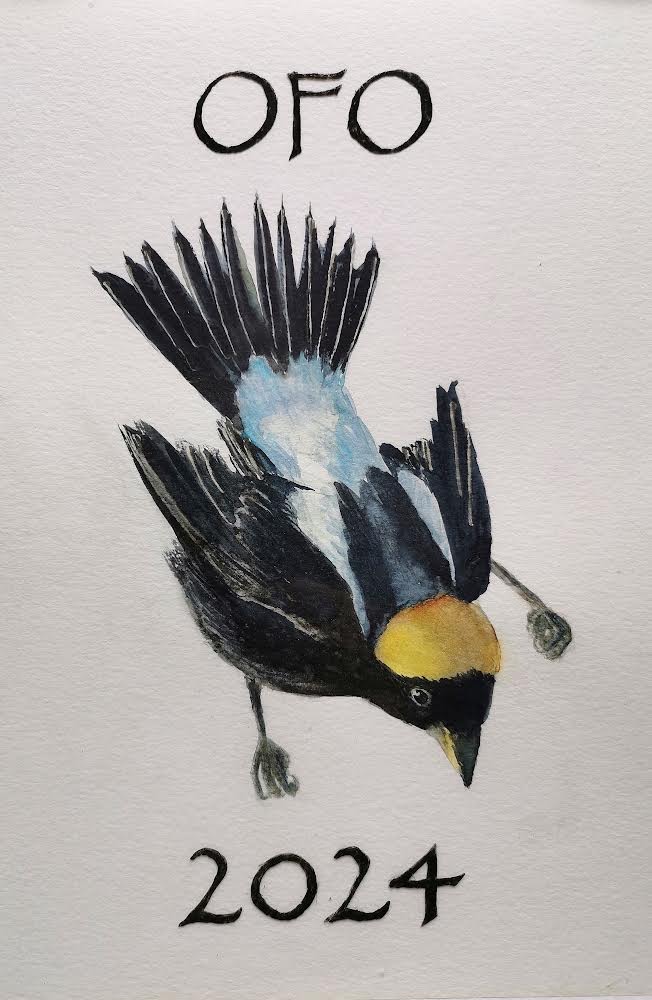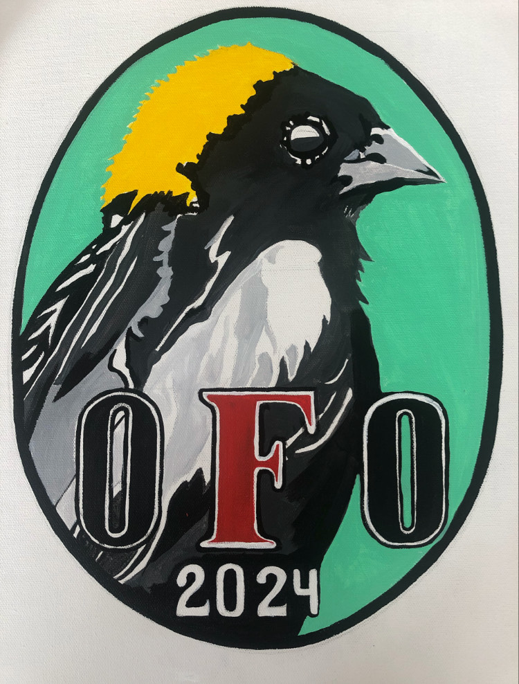 Alessandra Kite’s rendition of a flying male Bobolink gained the most votes from members, making it our first Bird of the Year logo! You can purchase it on a variety of items at the OFO Redbubble store