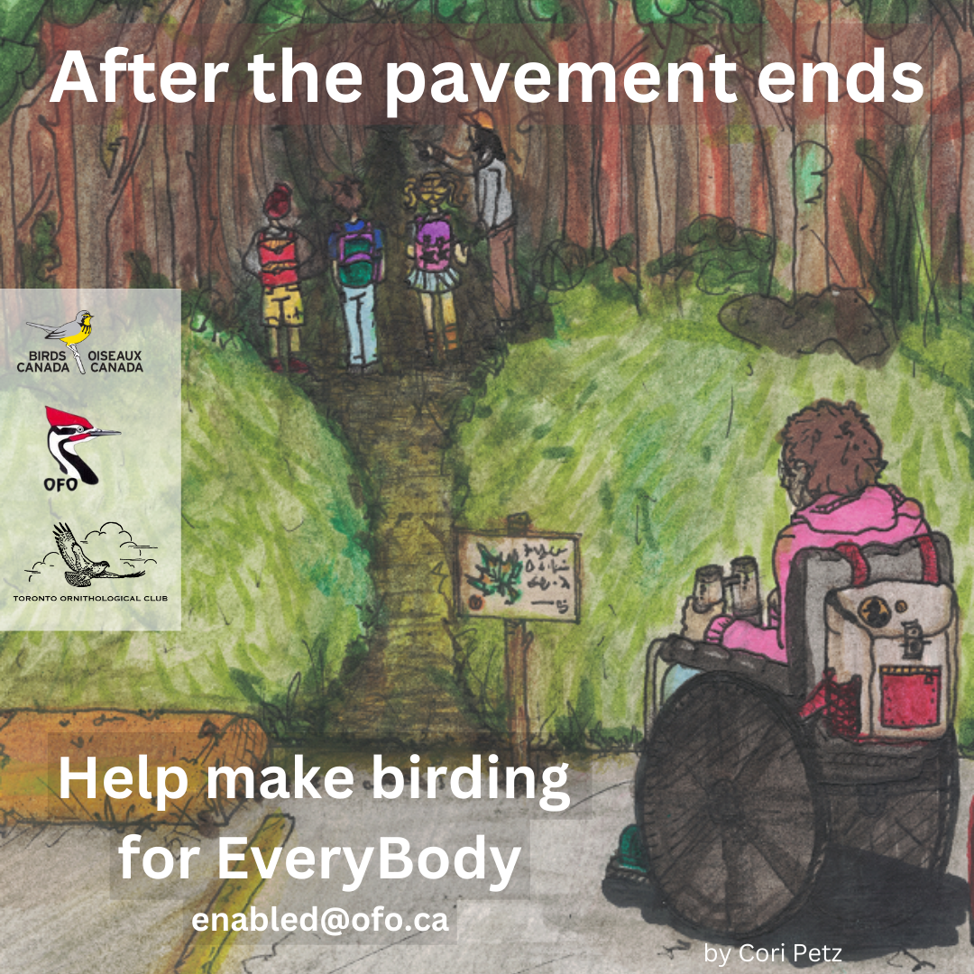 On behalf of OFO and Birds Canada, we send our enormous thanks to all the incredible volunteers who dedicated their time and energy to completing the comprehensive assessments of our first nine accessible birding hotspots in Ontario. This is the first project of its kind in Canada and we’re incredibly proud to make access to birds and nature more inclusive for all.